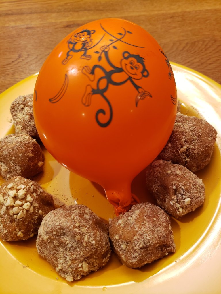 I was stoked to find this recipe, and in keeping with tradition, I did tweak it a bit, and I renamed it, because how could I not name it Monkey Balls? It all ties together so nicely.