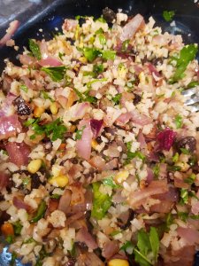Before & After - Remove from skillet and add to cauliflower mixture. Mix well.