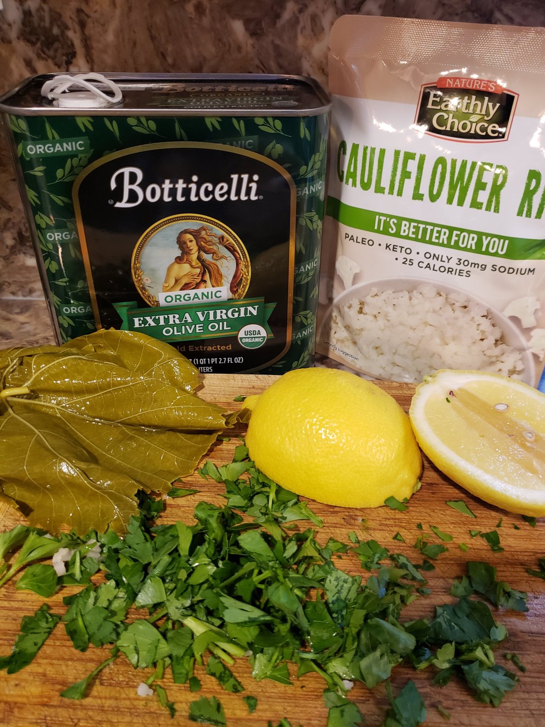 How versatile is the cauliflower? Let me count the ways! Not only can it be eaten raw or roasted; it’s now quite popular as a pizza crust, made into mashed “potatoes” or as a rice, like in these dolmas. Of course, you can make your own cauliflower rice at home, just grating fresh cauliflower. But, now it’s so easy and economical to just buy it already “riced” in the frozen section, and after my search I was pleased to find a shelf-stable option!