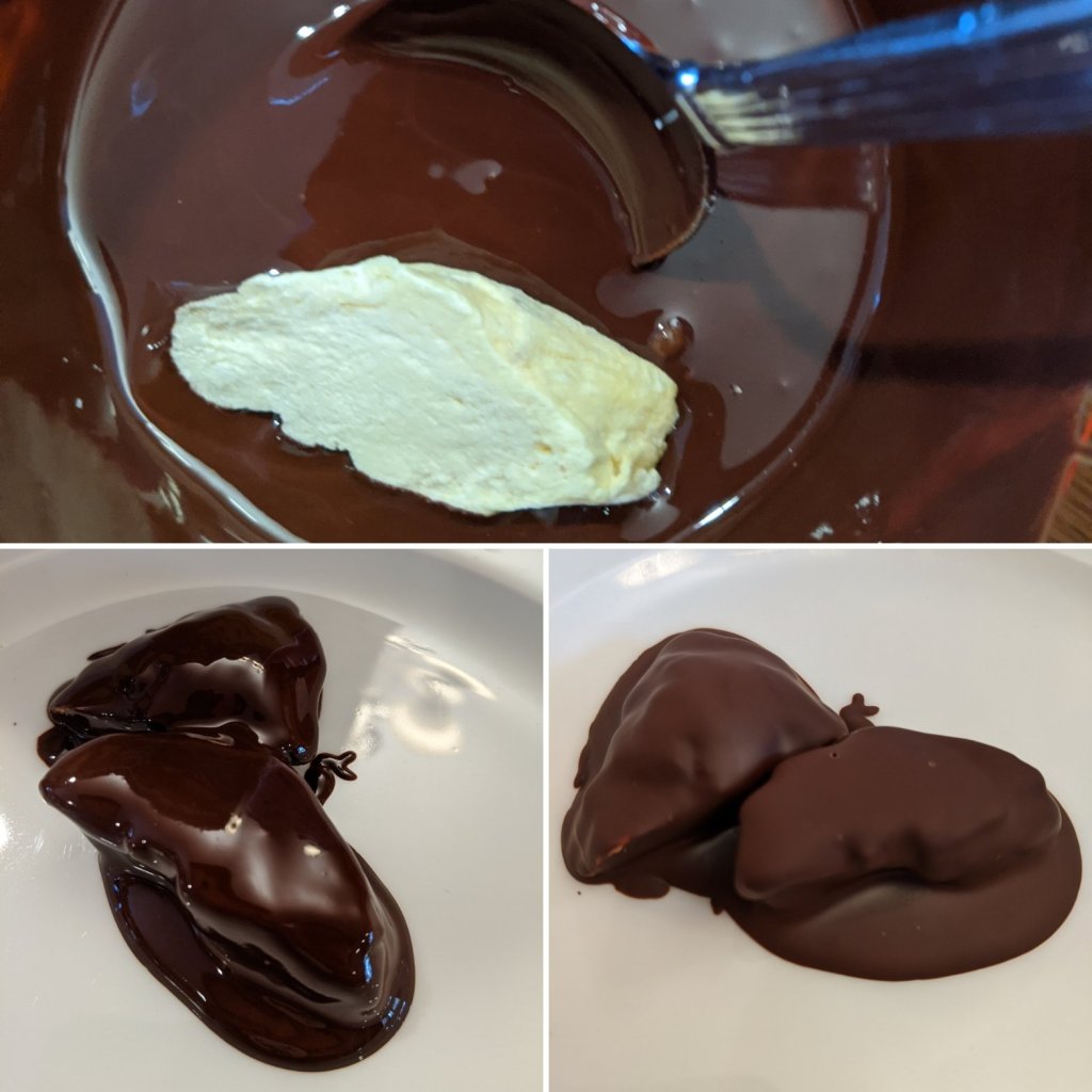 Pretty simple this one is. I melted a chocolate bar and dipped the freeze dried durian in it, then popped it into the fridge for a bit.