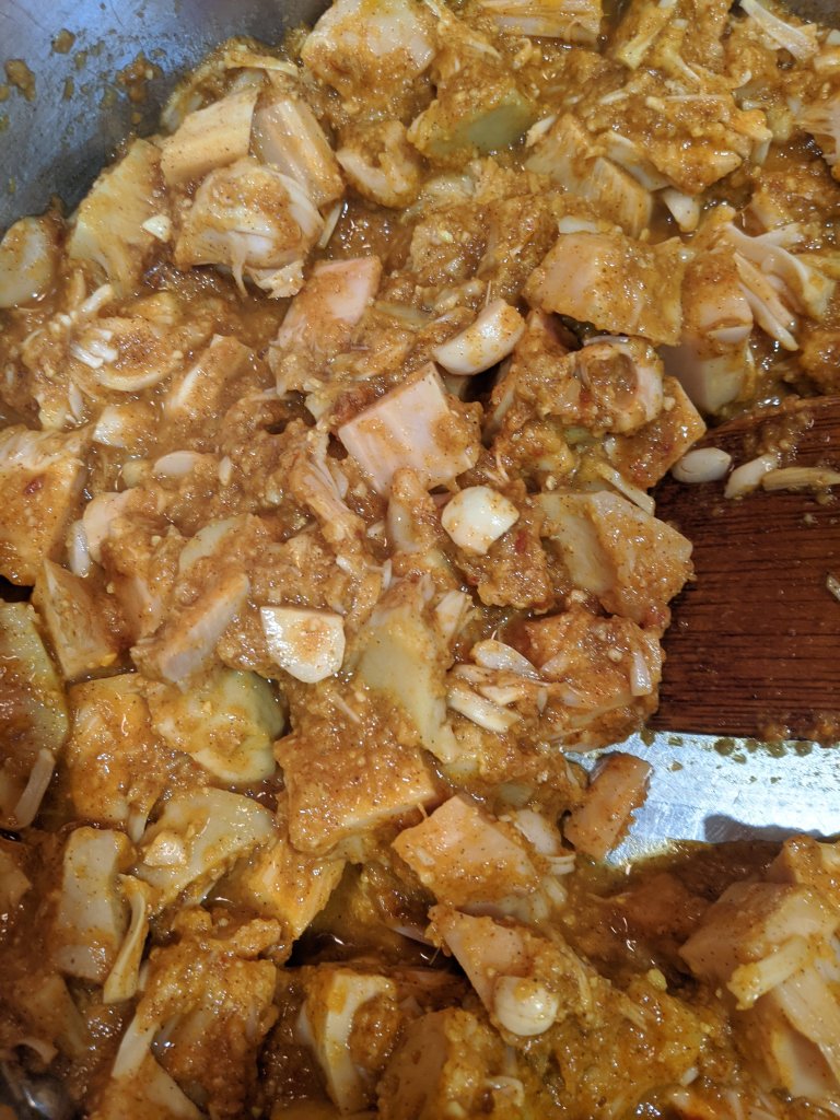 - While that is cooking, drain and chop the jackfruit into bite size pieces.