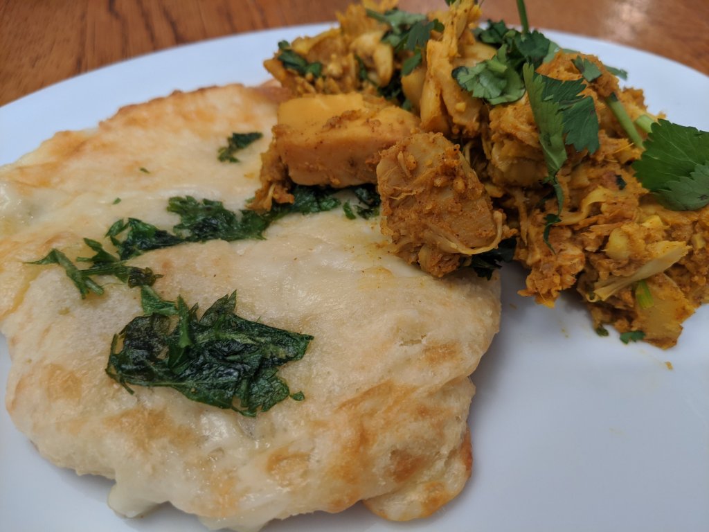 Nadiya’s Time to Eat on Netflix premiered at just the right time because she demonstrated a jackfruit curry recipe, that I was super excited to try (thereby nixing the popular BBQ jackfruit recipe, cause you know BBQ..). And while we’re on the subject, Nadiya’s Time to Eat is a fun, joyful cooking show with lively colors and fieldtrips- it’s a must watch. I remembered her from winning the 6th season of The Great British Bake Off and was happy to see her again.